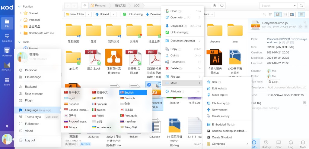 可道云是一款专注于企业级网盘和协作工具的文档管理系统,具有界面简洁、操作便捷的特点。其核心功能包括在线编辑、版本控制和团队协作,支持多种文件格式预览和在线操作。可道云可以部署在私有云、公有云或混合云环境中,灵活适配企业需求。它还提供开放的插件市场,用户可根据业务需求扩展功能。凭借快速部署和轻量化架构,可道云特别适合中小型企业或初创团队使用。